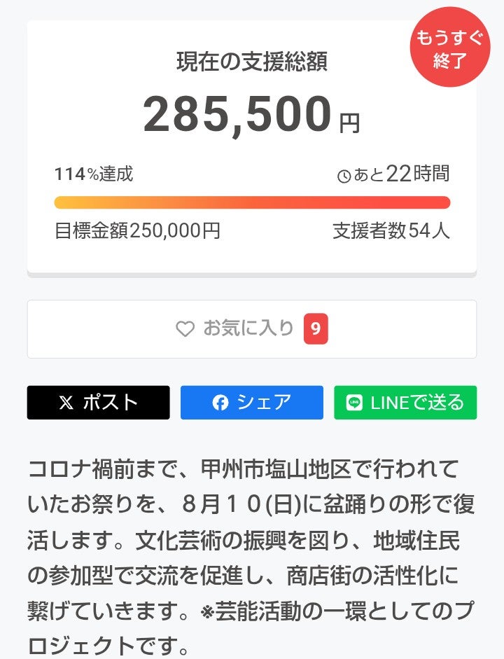 2025/08/05 01:56ネクストゴールまで、残り1万円余り!もうすぐオシマイです。何卒宜しくお願いします! もっと見る