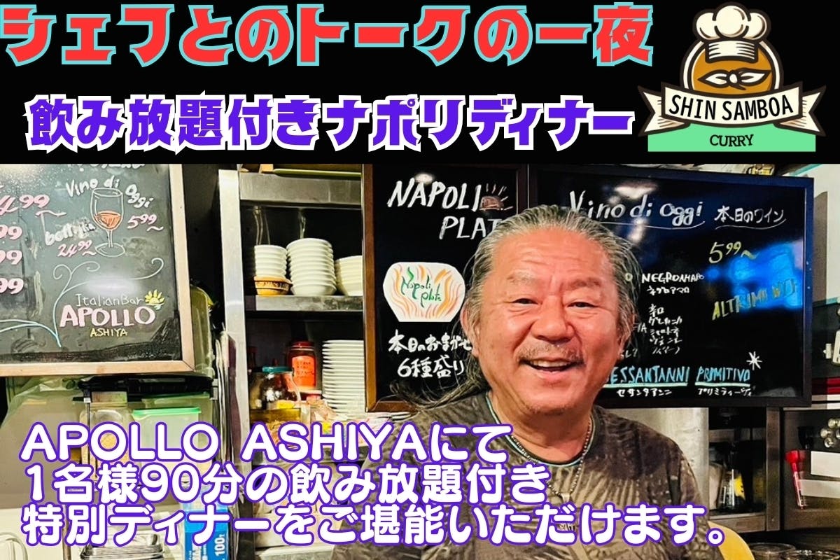 【特別体験】シェフとの一夜 飲み放題付きディナー(限定10名) APOLLO ASHIYAで1名様90分の飲み放題付き特別ディナーをご堪能いただけます!