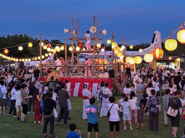 さて、7月19日(土)にひこうきの丘の近く「航空科学博物館」さんの広場にて「芝山夏祭り」が開催され、夏の夕暮れにたくさんの方たちが盆踊りや夜店を楽しんでいました。