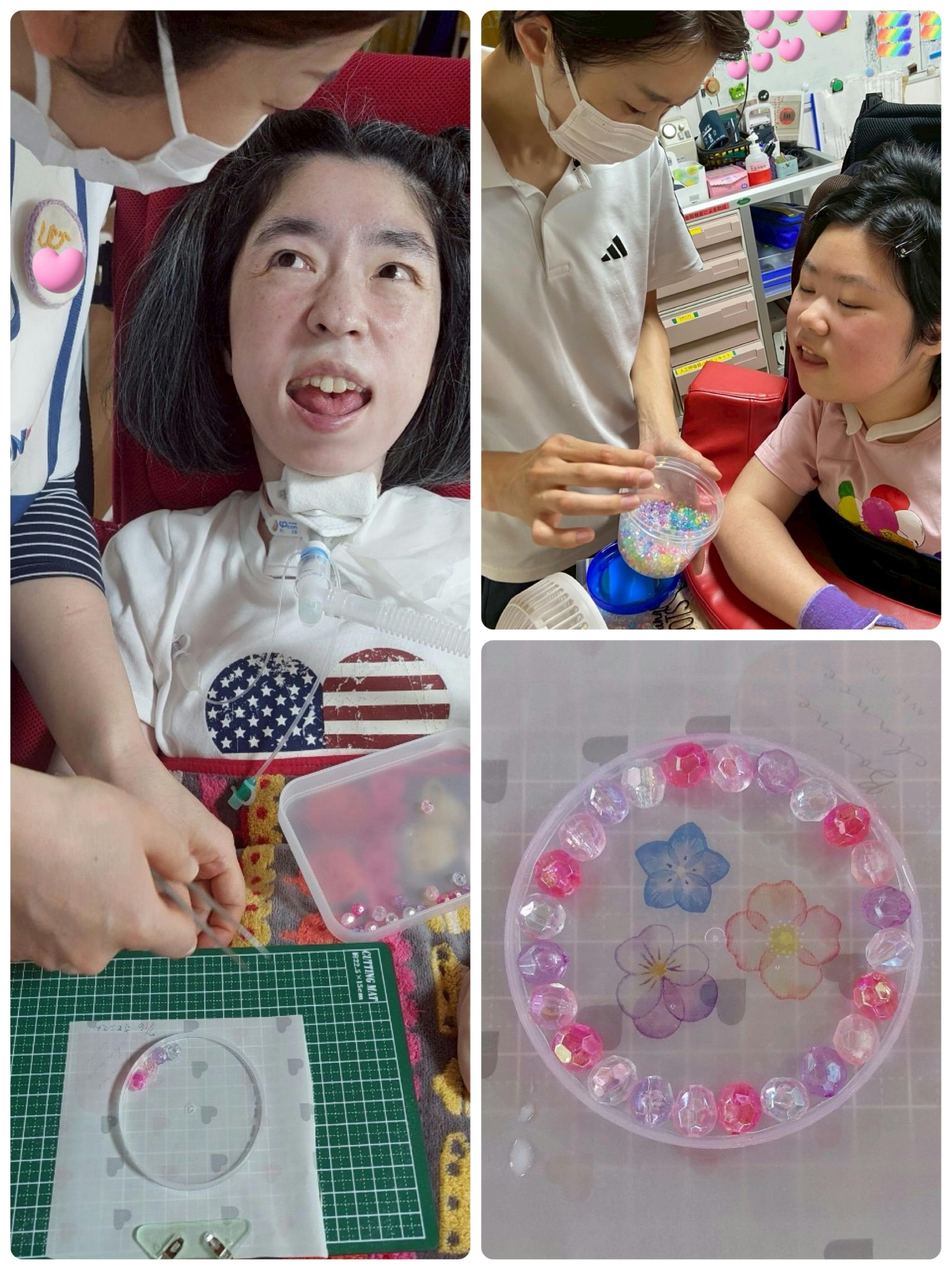 こちらは販売するものではないのですが、このようにパーツの色や配置をスタッフと一緒に考えながら作品作りをしています!