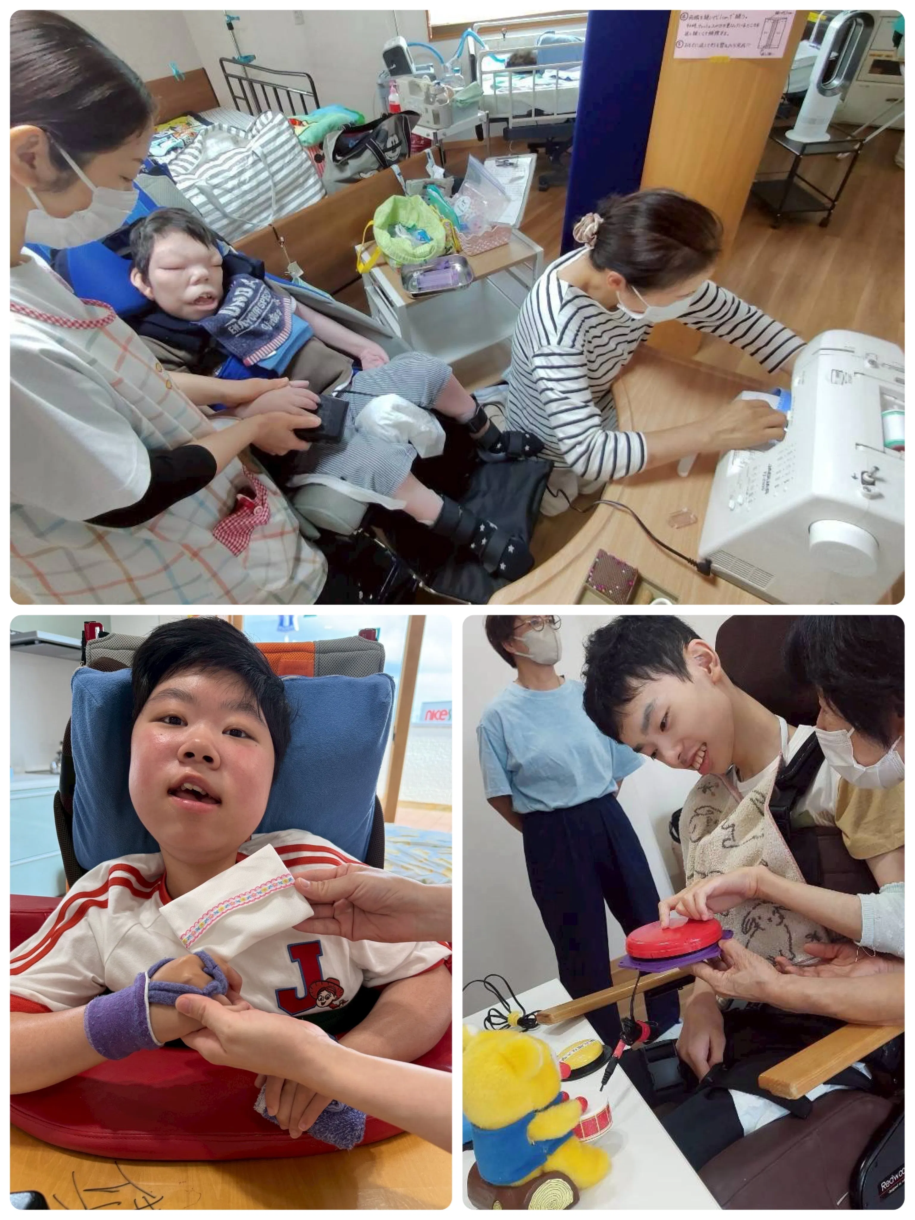 またお客さんに「来てくれてありがとう」の気持ちを伝えるべく、スイッチを押す練習もしています!スイッチを押すと声が出る装置だったり、ぬいぐるみのくまさんを動かしたりと、楽しみながら練習をしています(^^)/