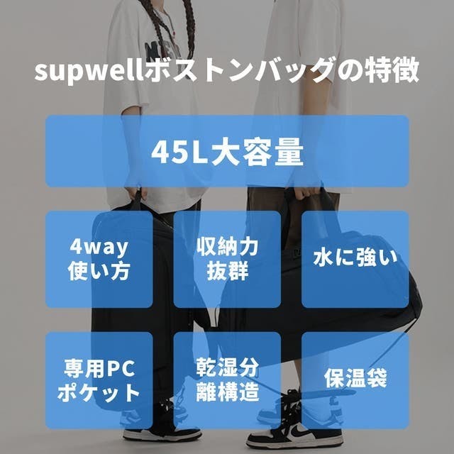 45L大容量なので、ジムはもちろん、1週間ぐらいの旅行・出張にもご使用頂けます。