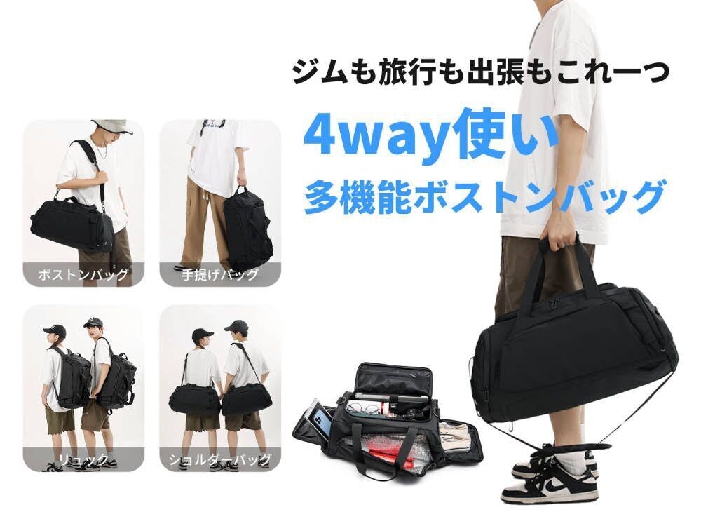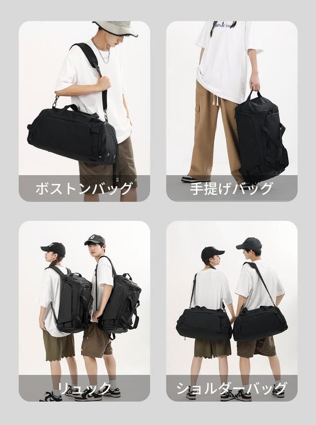 手提げバッグモード、リュックモード、ボストンバッグモード、ショルダーバッグモード