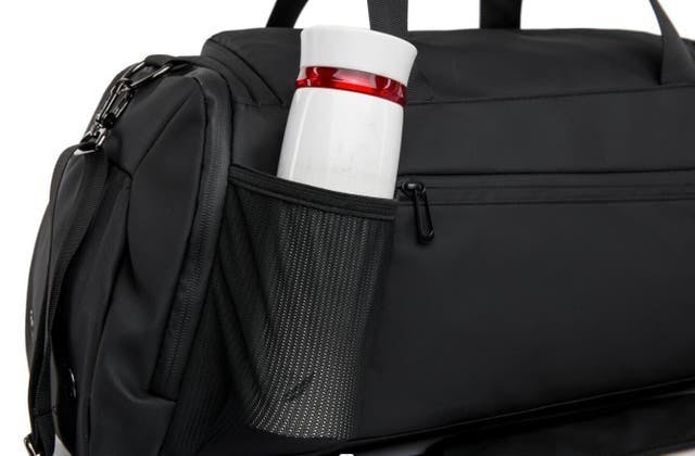 ジム通いのバッグとして欠かせないのがこちらのドリンク専用メッシュポケット、伸缩性があるので、折り畳み傘や飲料の収納スペースとしてご活用ください。