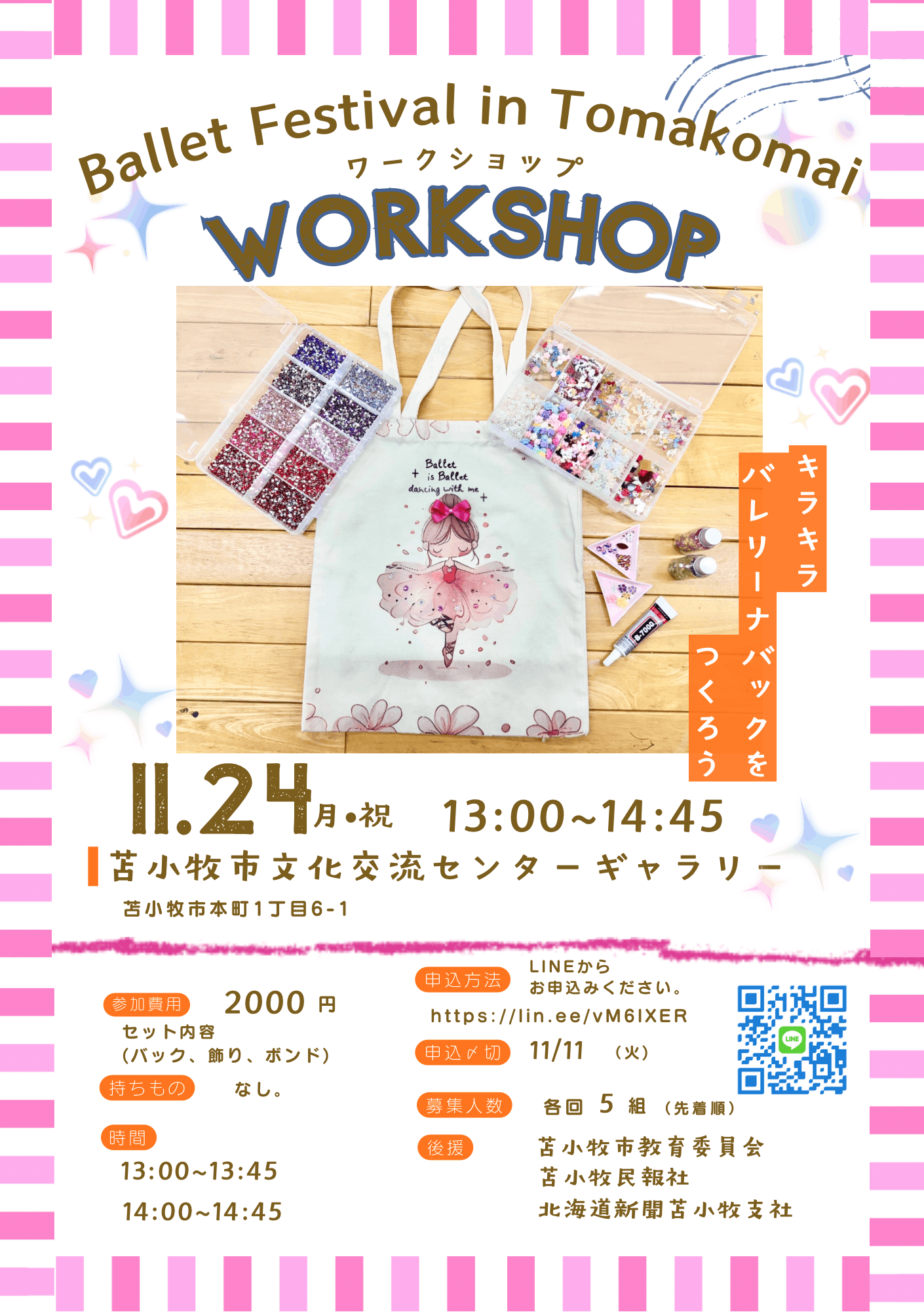 バレリーナ柄のバッグにビジューをつけて、オリジナルバッグを作るなど、小さなお子様も楽しめる内容です。