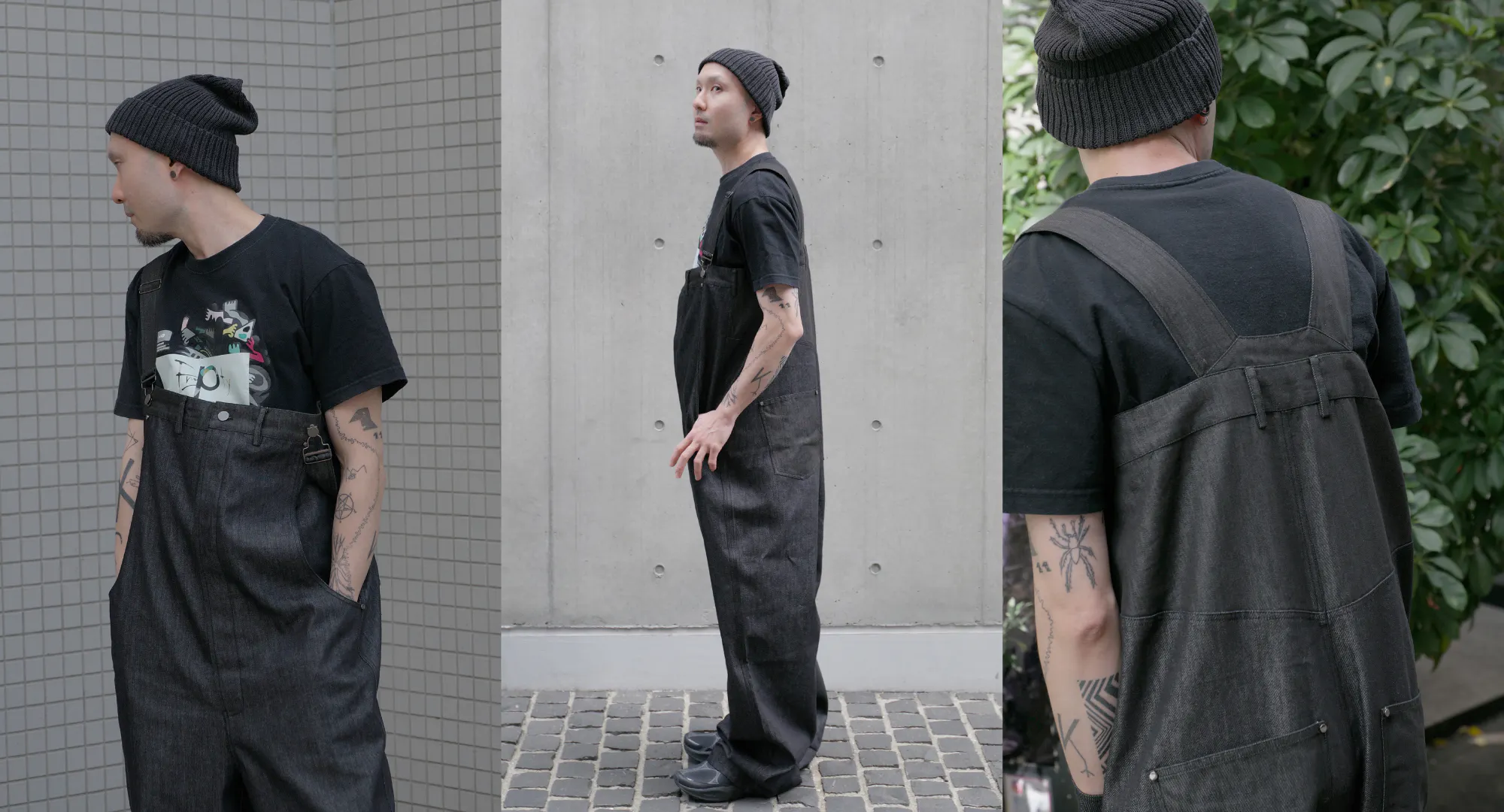 GAhhの第一弾、実在の作業服「胴付き長靴」を再構築したサロペット型パンツ。