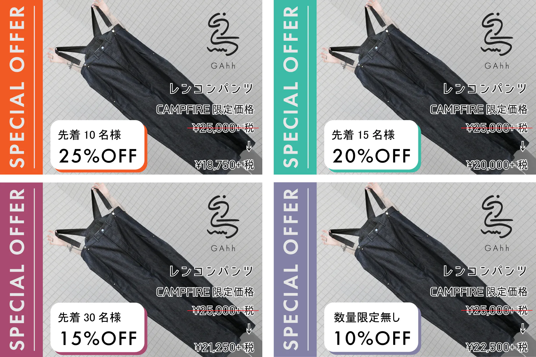 リターンは4種類、クラファン限定最大25%OFFにてご用意しました。