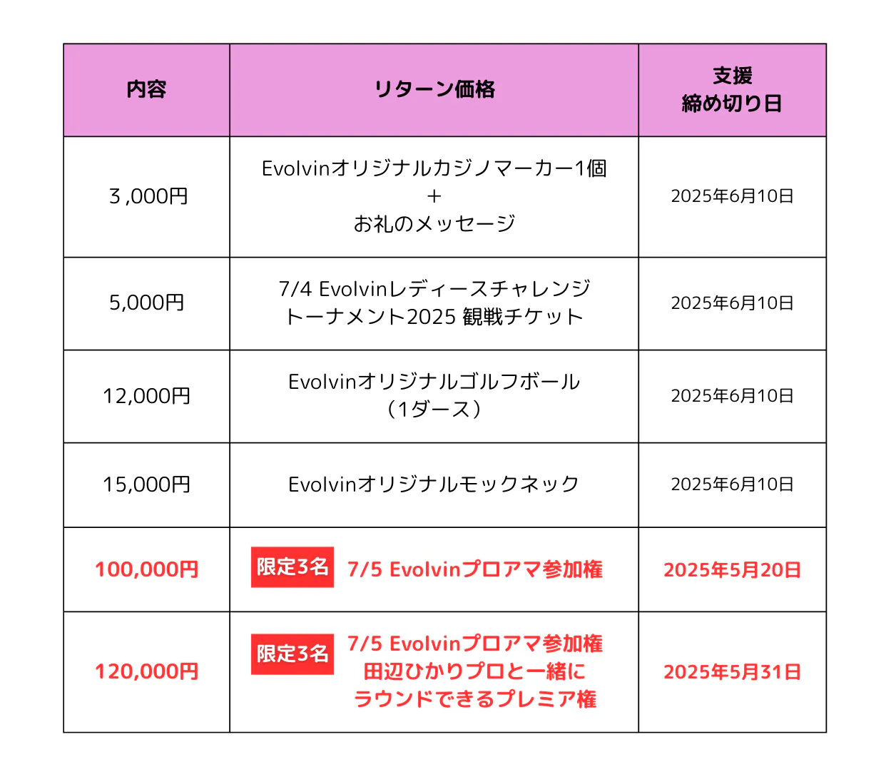 ・2025年5月20日 7/5Evolvinプロアマ参加権 締め切り