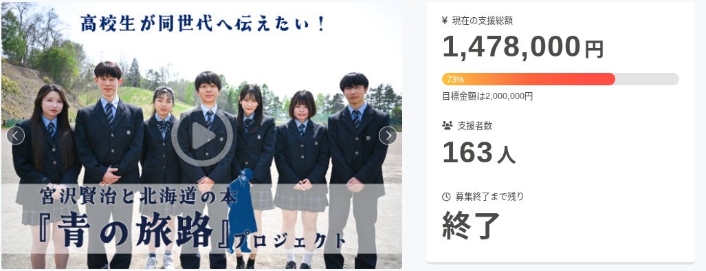 目標額には届きませんでしたが、163名の方から1,478,000円ものご支援をいただくことができました。
