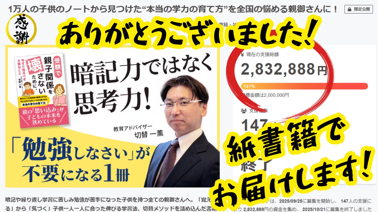 学習法診断など、書籍なしでもできるリターンは先行して行おうと思いますので、順次ご連絡させて頂きます。