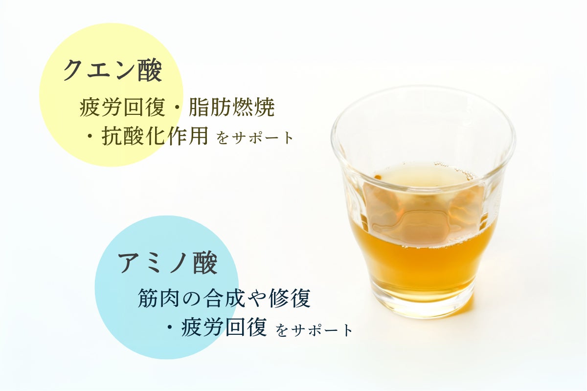 「酢」と言いますが、主成分はクエン酸で酢酸を含まないため、酢特有のツンとした風味がなく、飲みやすいのが特徴です。