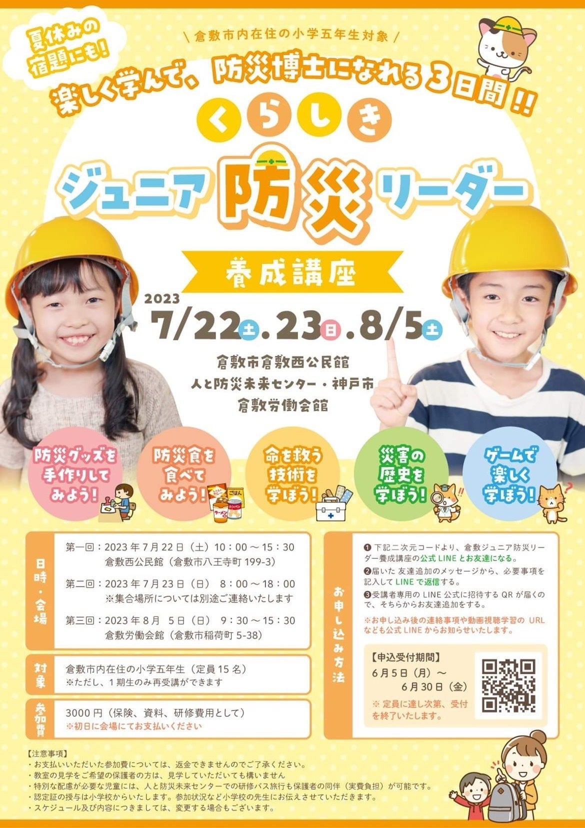2022年「第2弾 防災おやこ手帳」発行、くらしきジュニア防災リーダー養成講座開講