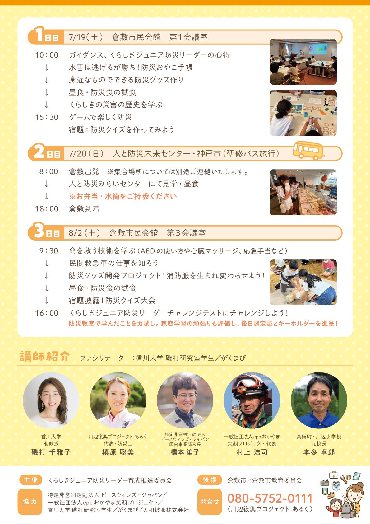 「くらしきジュニア防災リーダー養成講座」の案内を倉敷市内の全60校 5年生 4304名に送りました。