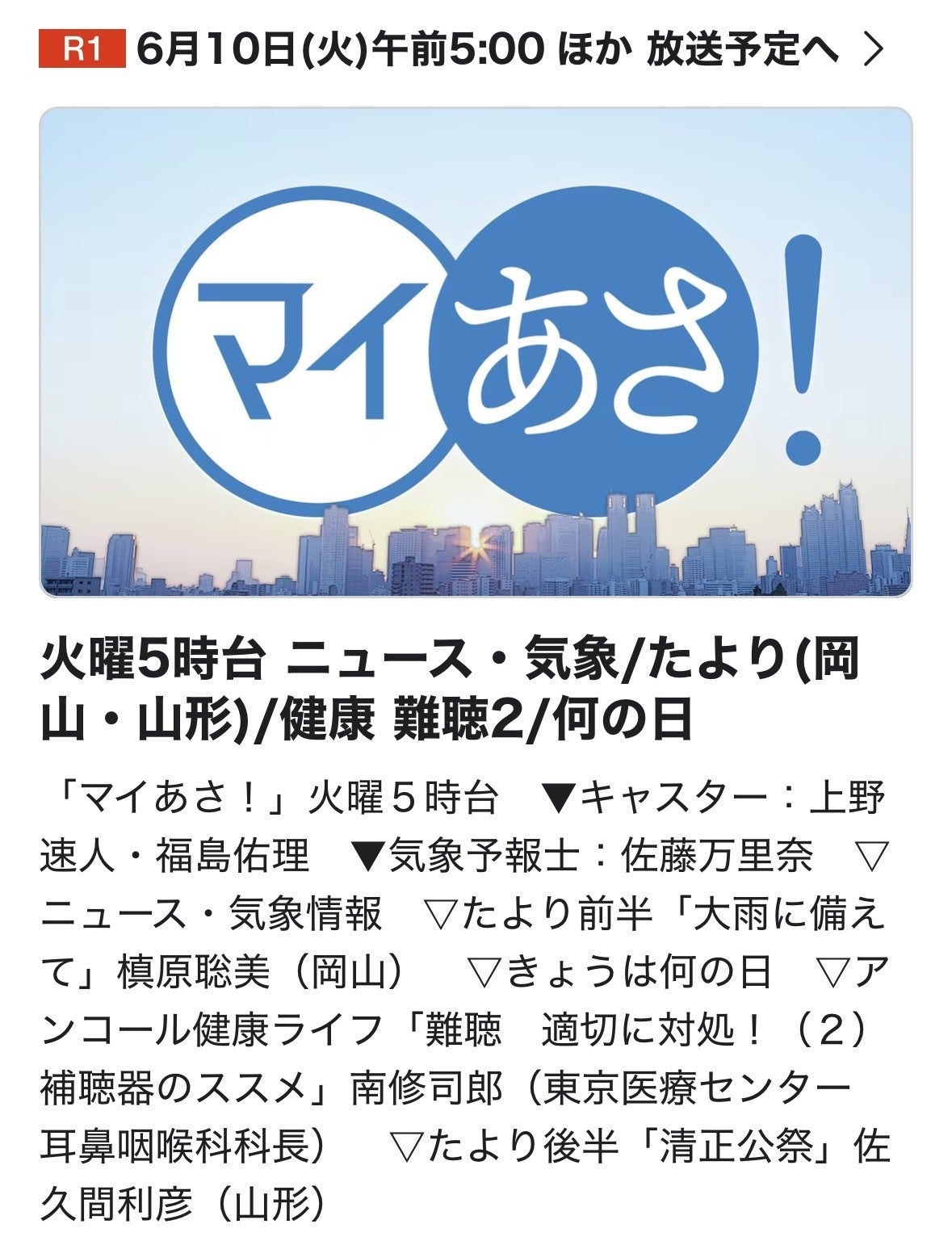 今日のNHKマイあさは らじるらじるで1週間 聞き逃し配信しています。