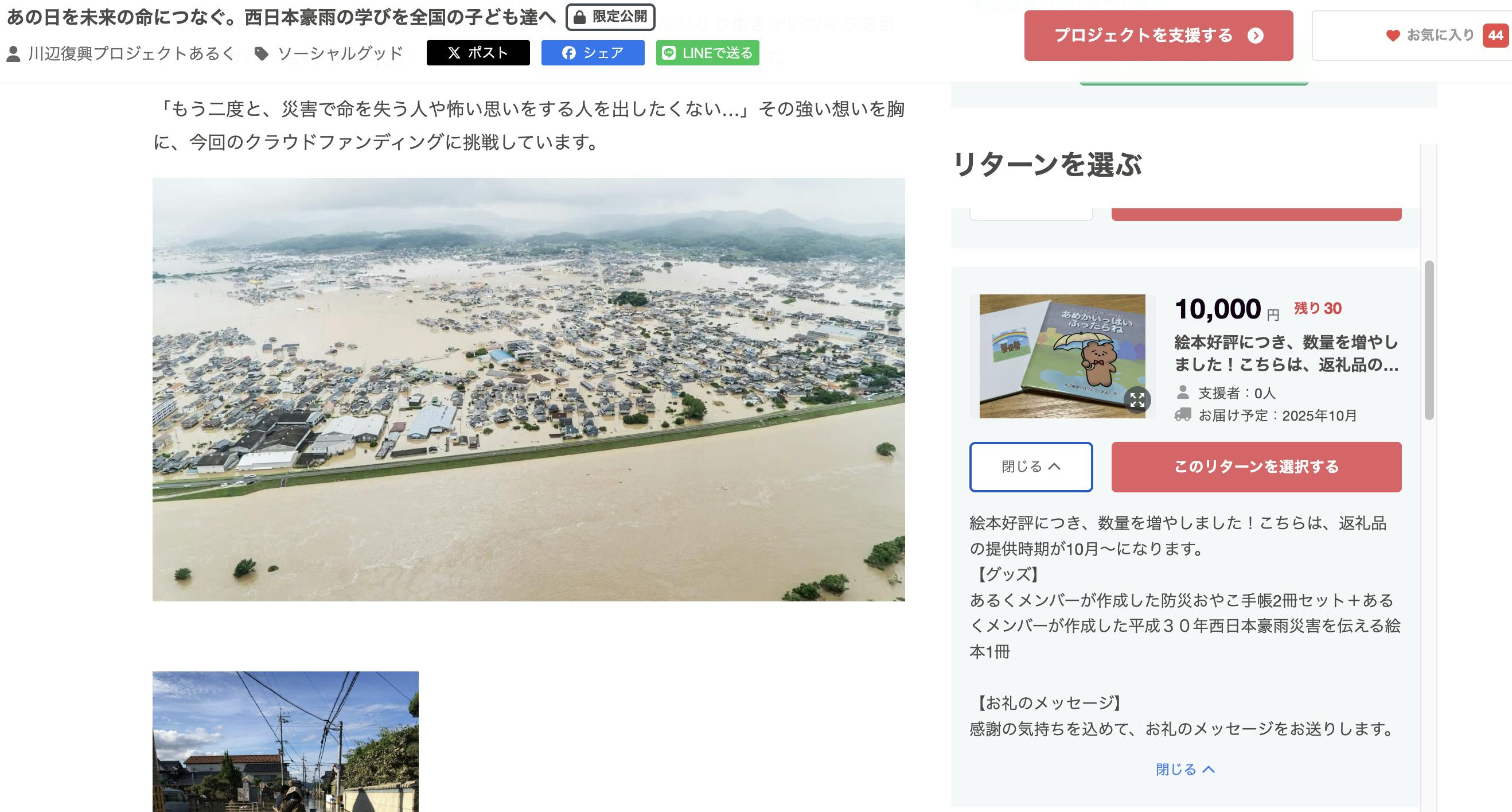 リターンは、今回新しく作った絵本と防災おやこ手帳のセットです。
