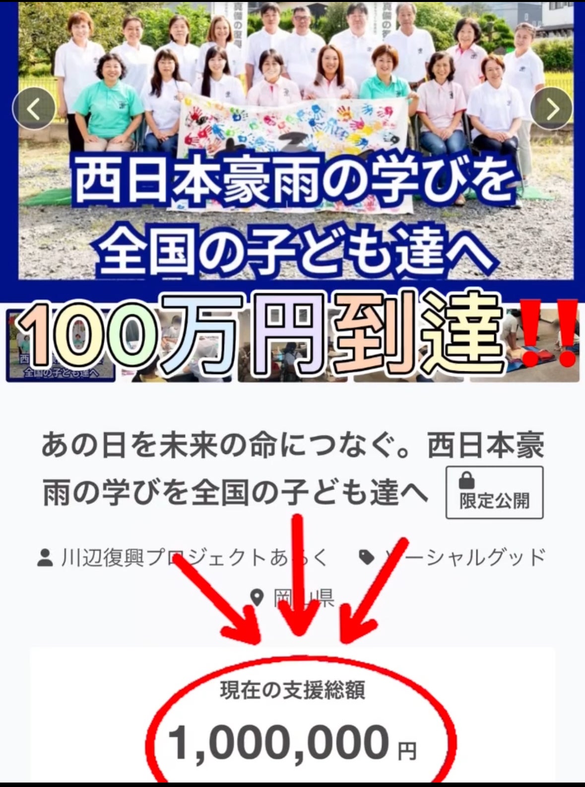 キリ番 達成です!ちょうど、定例スタッフミーティングの直前でしたので、あるくのみんなで飛び上がって喜びました!ご支援、ご協力をいただいている皆様、ほんとうにありがとうございます。私たちの取り組みの意義や価値に自信がなくなるときもありますが、皆様に応援していただき、より内容の充実した取り組みをしていく力をいただくことができています。あと、約2週間。ラストスパートに差し掛かります。のこり50%・・・。私たちだけでは、達成できない目標でも、皆様のお力添えできっと達成できるものと信じています。あと14日!お付き合いくださいませ。