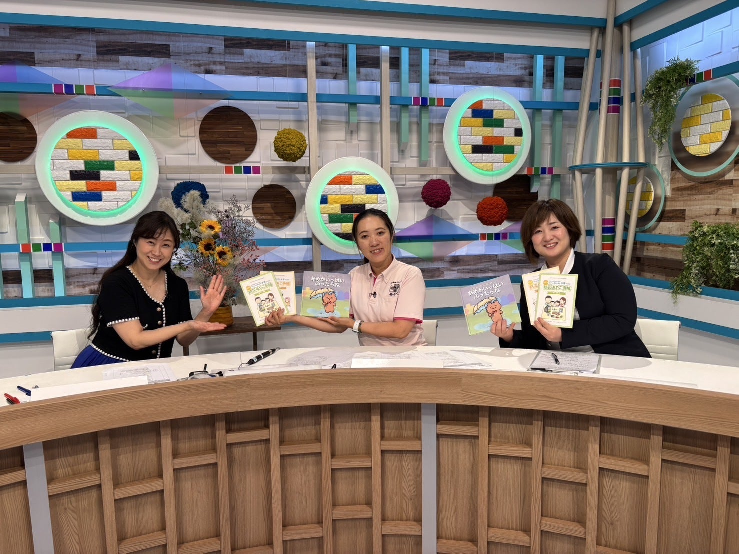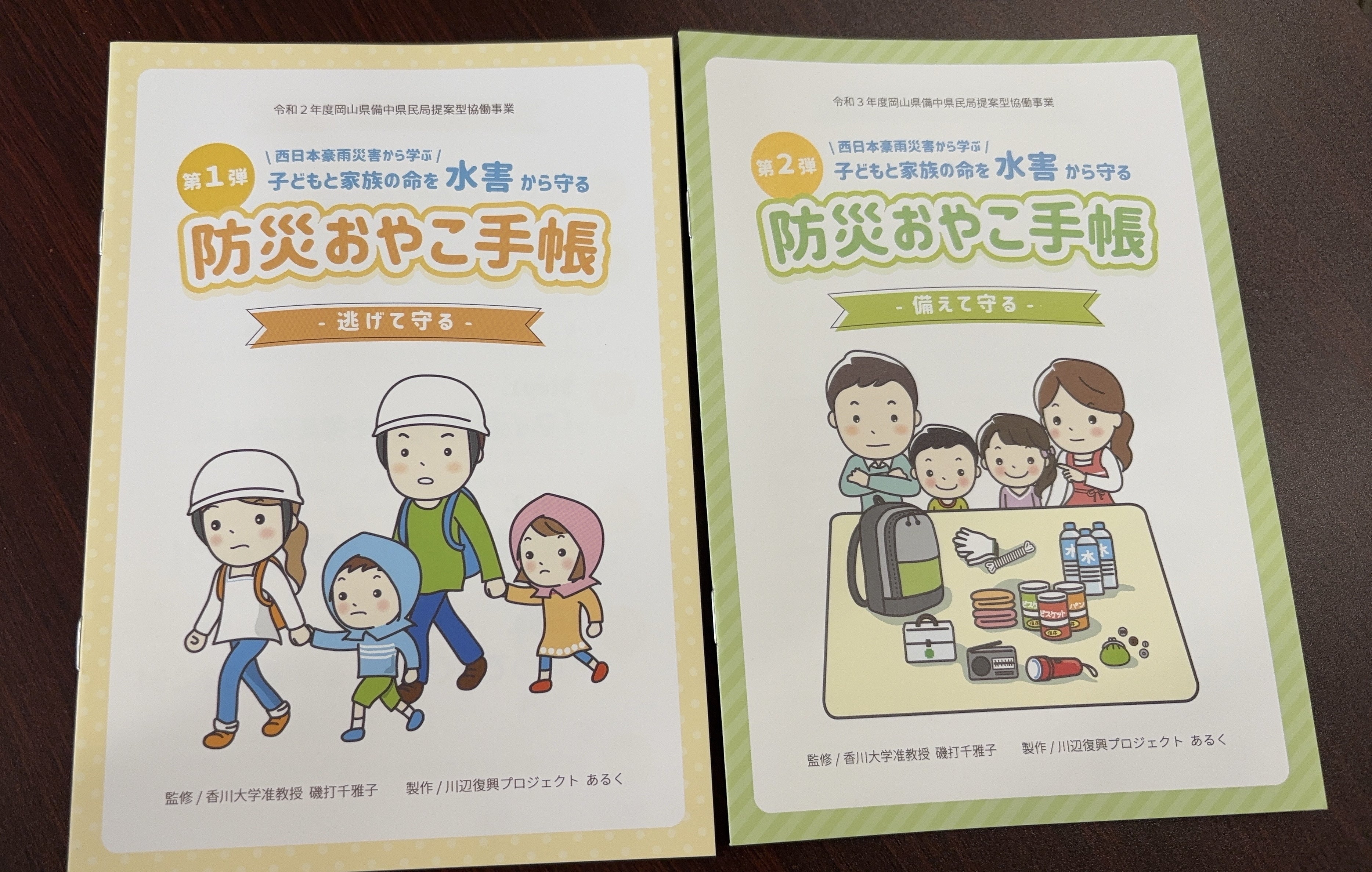 地元のケーブルテレビさん、いつも私たちの取り組みにアンテナをはって、取材をしてくれます。今回は、倉敷ケーブルテレビさんでは初めて、ニュースに生出演させていただきました。代表の槙原と事務局長の田中の2人で。本番直前まで原稿を読み込みましたが、本番で槙原は「寄付」を噛んで、もう一度言い直しても噛んで(笑)諦めて、そのまま読み進めました。視聴された方・・・絶対バレてますよね。今までの活動や防災おやこ手帳、絵本のことまで広く浅くご紹介しましたが、アナウンサーの橋本さんがリハーサルになかったフリを上手に入れてくださり、話を膨らませてくださいました。私たちの活動をよく知ってくださっているからこそですね。ありがたいです。森記者と午前中は、大元こども園の保護者の皆様に講演させていただきました。今はお子さんが小さいので周りの大人や親が直接的に守る必要がありますが、大きくなってくると、自分の身を守れる子に育てていくことも周りの大人の大切な役目です。災害時の情報については更新されていくことも多々あります。ぜひ、アンテナをはっていて欲しいものです。1時間という限られた時間でしたので、十分なことが伝えられなかったですが、きっと、皆さんの防災スイッチをそっと押すことができたのではないかと思います。「もっと(講演を)聞きたかった!」と言ってくださった、会長さんと役員さん。絵本を読みかせで使いたいと声をかけてくださった参加者さん。ありがとうございました。可愛いチラシ ありがとうございます!