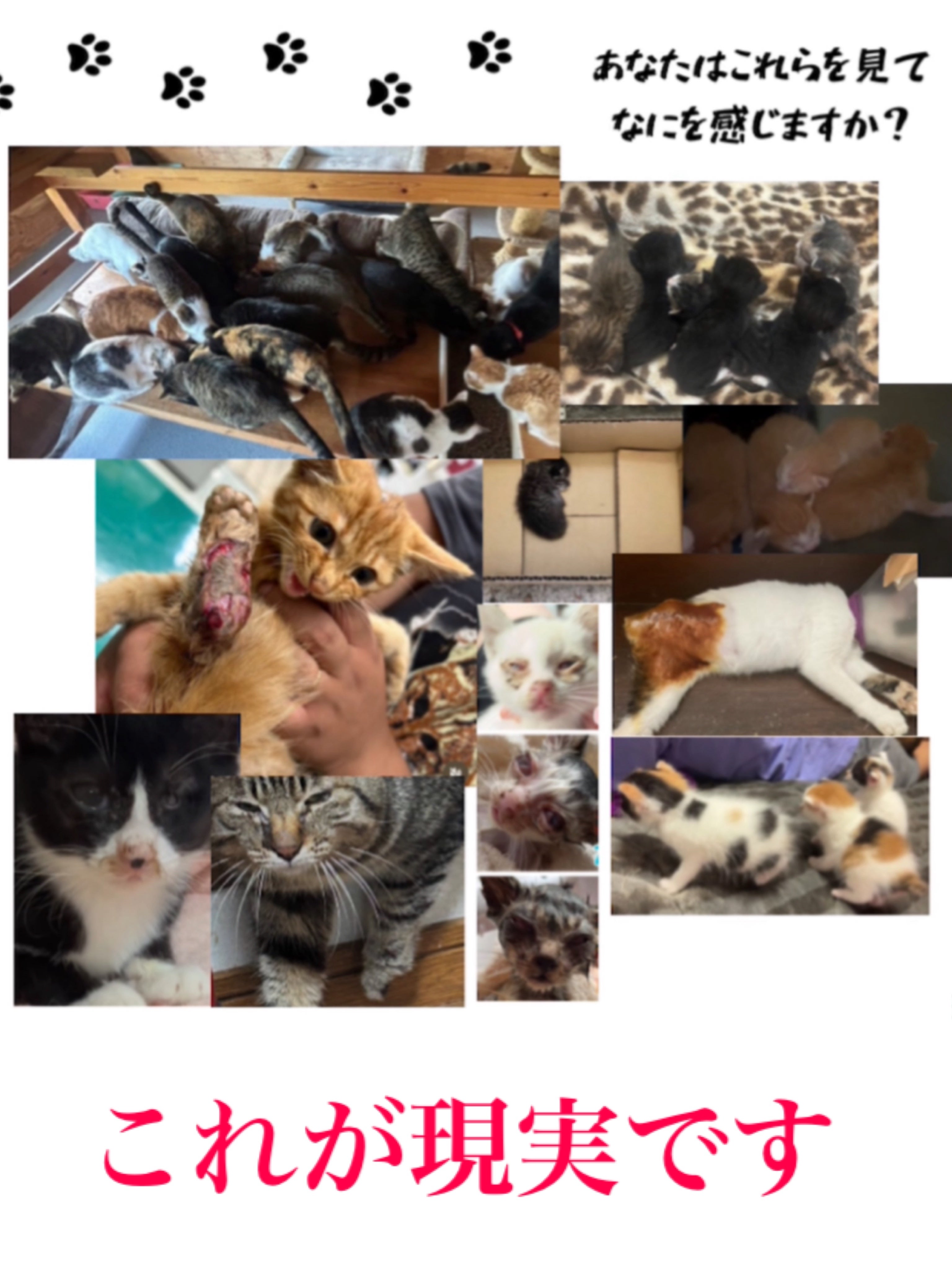 なにを感じますか?この写真は私が出会った子達です。それもごくごく一部です。夫婦そろって、このような大変な子によく出会います。行きつけの獣医さんにもよく言われます。ちなみに…その行きつけの病院までも片道1時間以上かかります。抜歯、断脚、断尾、眼球摘出、FIPに白血病…様々な子がいます。私はロードキルの子もペット火葬をしてもらっています。頭が潰れて眼球が飛び出した子、内蔵が破裂した子、どんな子でもどんな場所でも必ずこの手で抱いて連れて帰ります。綺麗にしてペット斎場へ連れて行っています。これらももちろん自費です。今回のクラウドファンディング、どうか達成できますように!!!