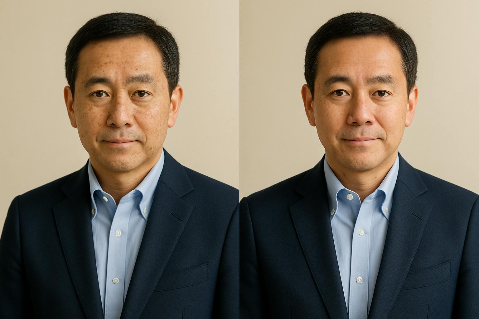 同じ年代・同じ表情でも、“シミがあるかないか”だけで、印象は驚くほど変わります。実際、肌の美しさや清潔感は、相手に与える印象を大きく左右します。
