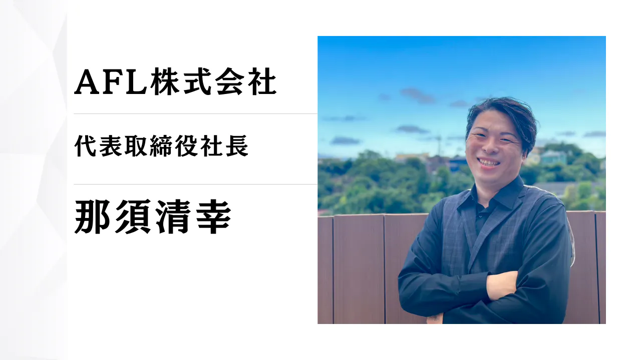はじめまして。AFL株式会社 代表取締役の那須清幸(なす きよゆき)と申します。