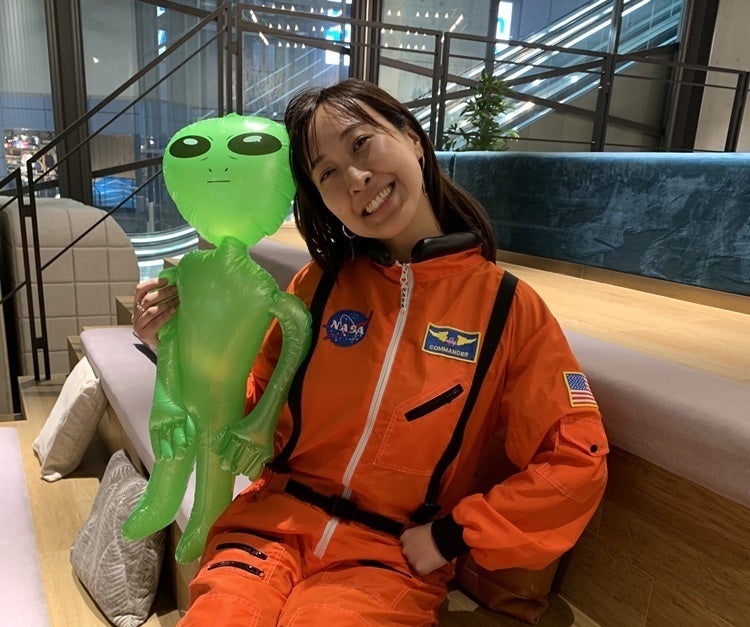 素敵な笑顔で宇宙人とポーズを決めているのは