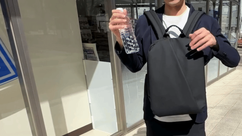 歩きながらでも、信号待ちのほんの数秒でも、いちいちリュックを降ろすことなくサッと水分補給ができます。