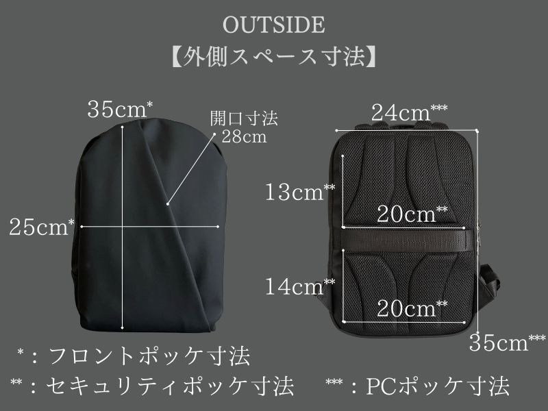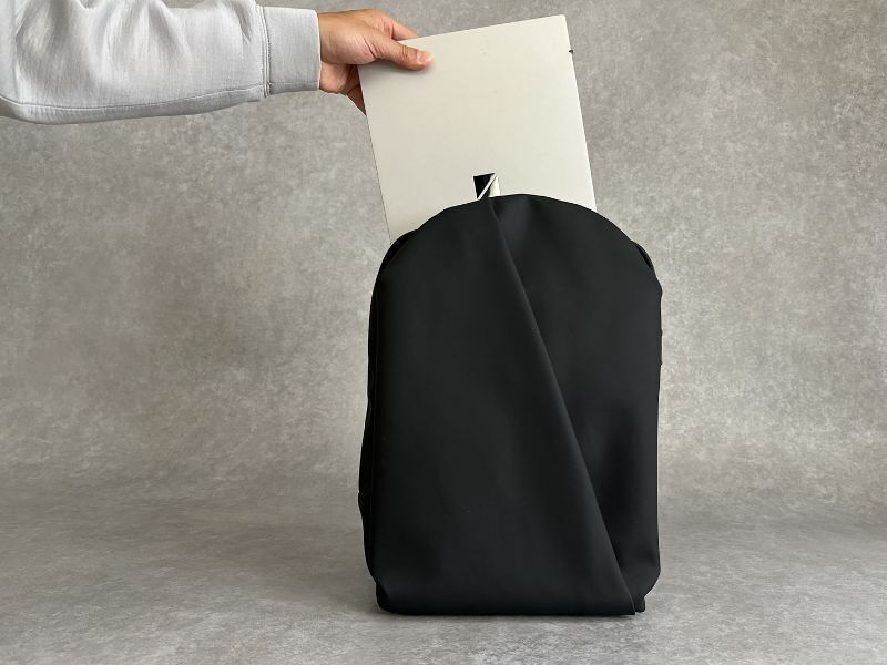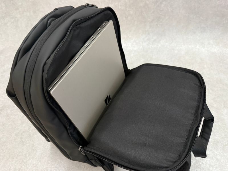 ポケットサイズは35×24センチ。最大14インチのパソコンまで収納が可能です。