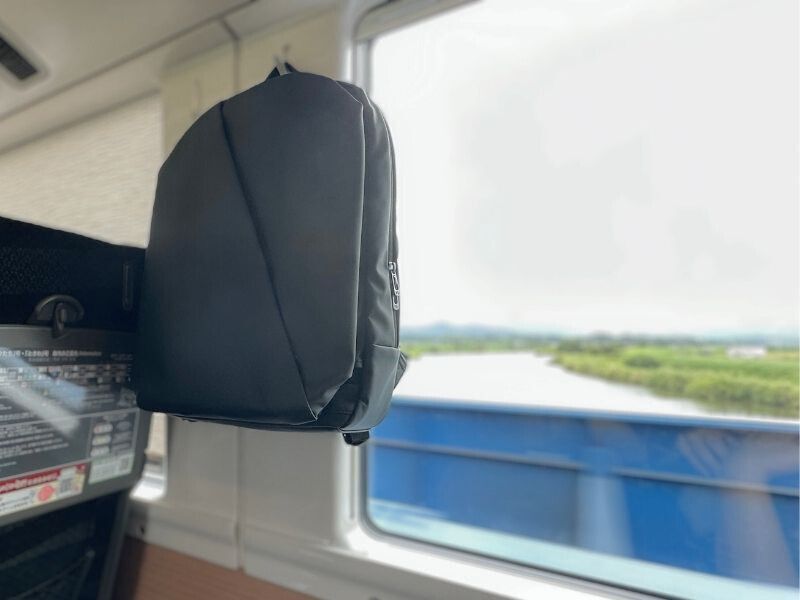 新幹線で移動中は荷物フックにかけながら、サッと取り出してメールチェック。
