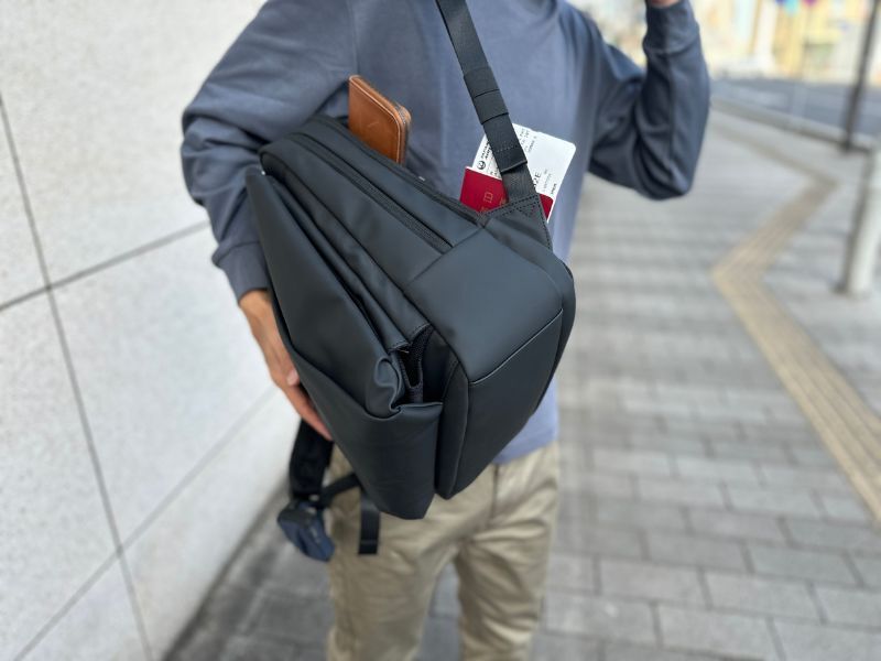 アクティブに動き回れるビジネスバッグは、海外出張でも活躍します。