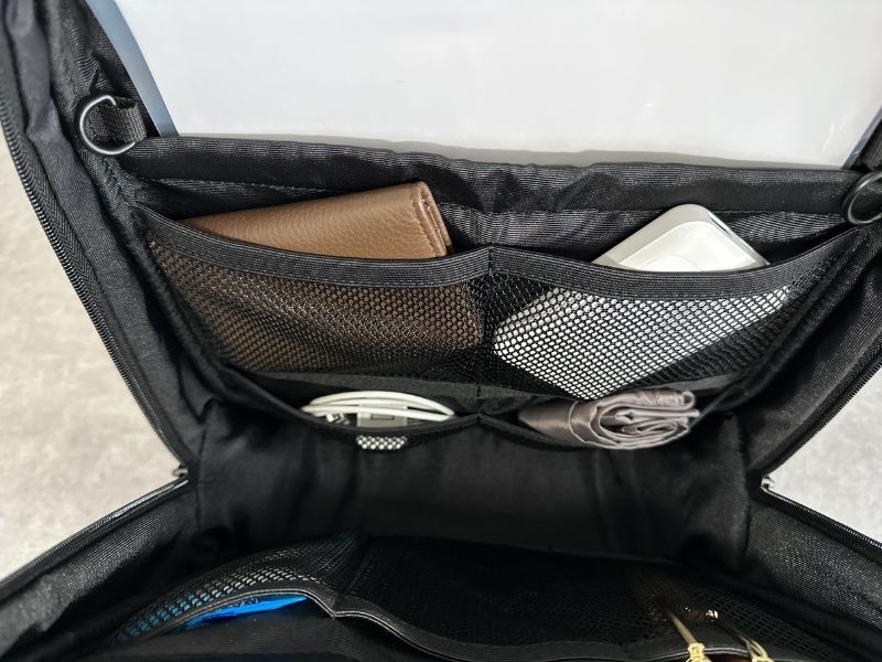 そんな迷子をなくすために、ファスナー付きで小分けできる小物スペースがあります。