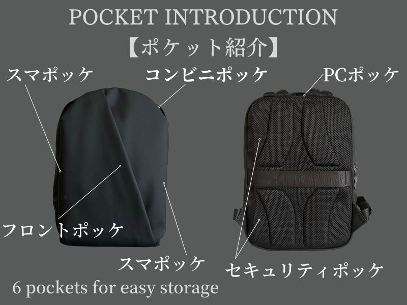A. 6つのポケットに加え、9つの収納スペースがあります。