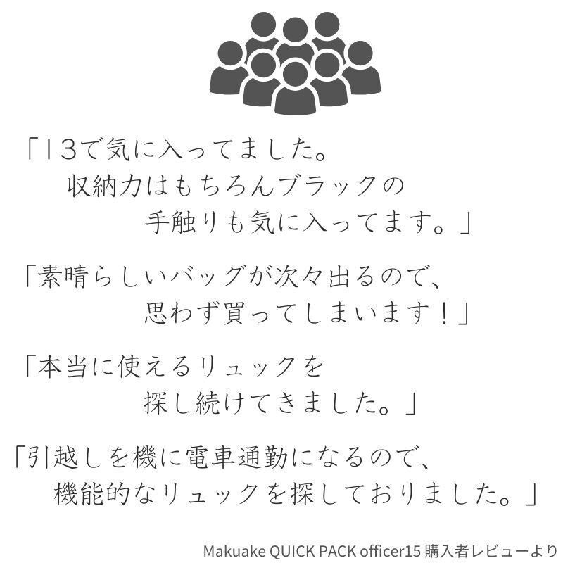 2026/04/21 12:00支援者のみなさまいつもプロジェクトの応援ありがとうございます。本日12時より35,000人のユーザーを抱える人気のQUICK PACK シリーズから、【14インチPC&A4】ジャストサイズの通勤バッグ~QUICK PACK 14s~が公開されました!仕事や何気なく使うことの多い「14型PC」や「A4書類」がピッタリサイズ️。もちろん大きいだけのバッグではなく、・取り出しやすく探さない『定位置設計』・スマホをサッと取り出せる『スマポッケ』・拡張できる『ドリンクポッケ』など、日々の生活を快適にする機能が満載!すでにお使い頂いているユーザー様からは「仕事でもパソコンを持ち歩くので重宝します」「13インチと10インチのPCを2台持ち歩くことが多く、これまでワンショルダーは諦めていましたが、このバッグなら気軽に出かけられます」と高い評価をいただいております。そんな「身軽に働く人のためのワーカーズバッグ」は・最大25%OFF 6,410円割引き・単品プランは先着80名様の数量限定・人気の「オプションセット」もご用意バッグのサイズで悩める方、身軽に気軽に通勤をしたい方、お見逃しなく!≫プロジェクトはこちら もっと見る