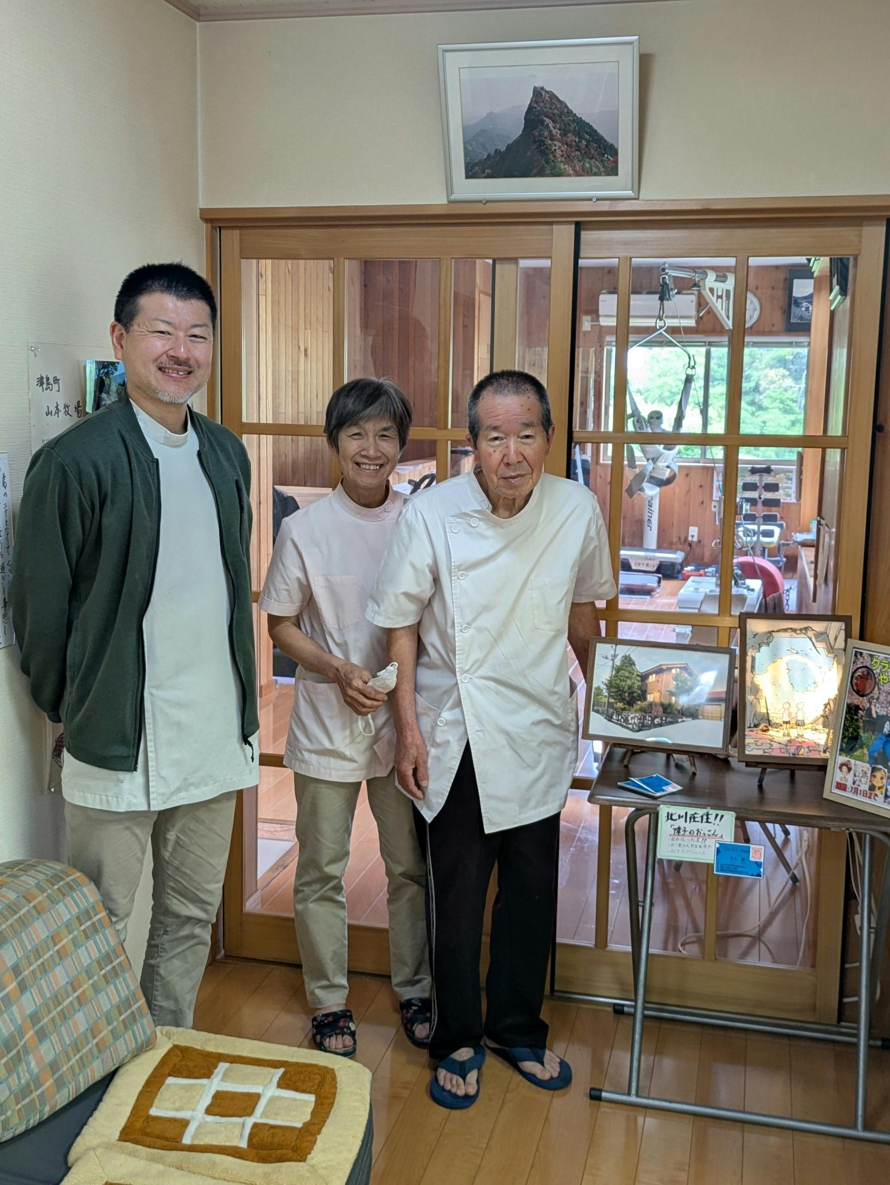 2025/05/12 08:49商品を紹介したところ大変感激してもらいまして、今回期間中ずっと室内で展示させてもらうことになりました。接骨院の大旦那さまはパーキンソン系統のご病気にかかっており筋肉が衰える不治の病でいらしゃいます。ですが息子様がそれを支えて家族と共に経営しておられます不治の病・・・それを支える奥様もご立派です(ご当人も一番大変だと思います近隣地域で助け合いは大事だと実感いたしました。郵便番号:798-1354住所愛媛県北宇和郡鬼北町大字北川609-1電話番号0895453589接骨院/整骨院 もっと見る