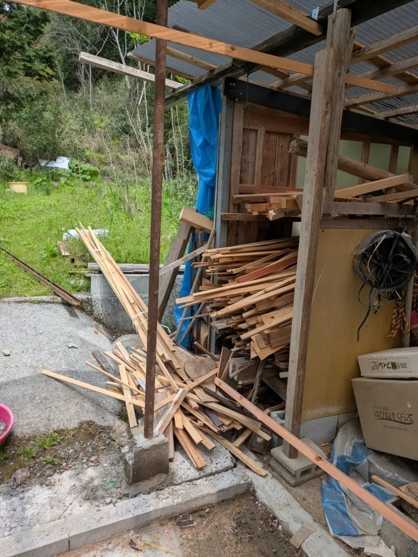 お気づきの通り作業場に壁を作る資金すらありません。何とか屋根はつけましたがギリギリです