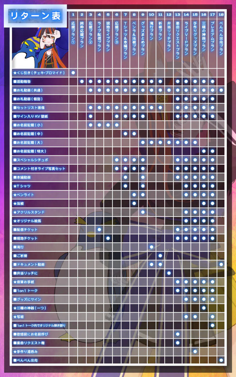リターン内容はそれぞれ現地ライブプラン、ライブ配信プランと同じです。