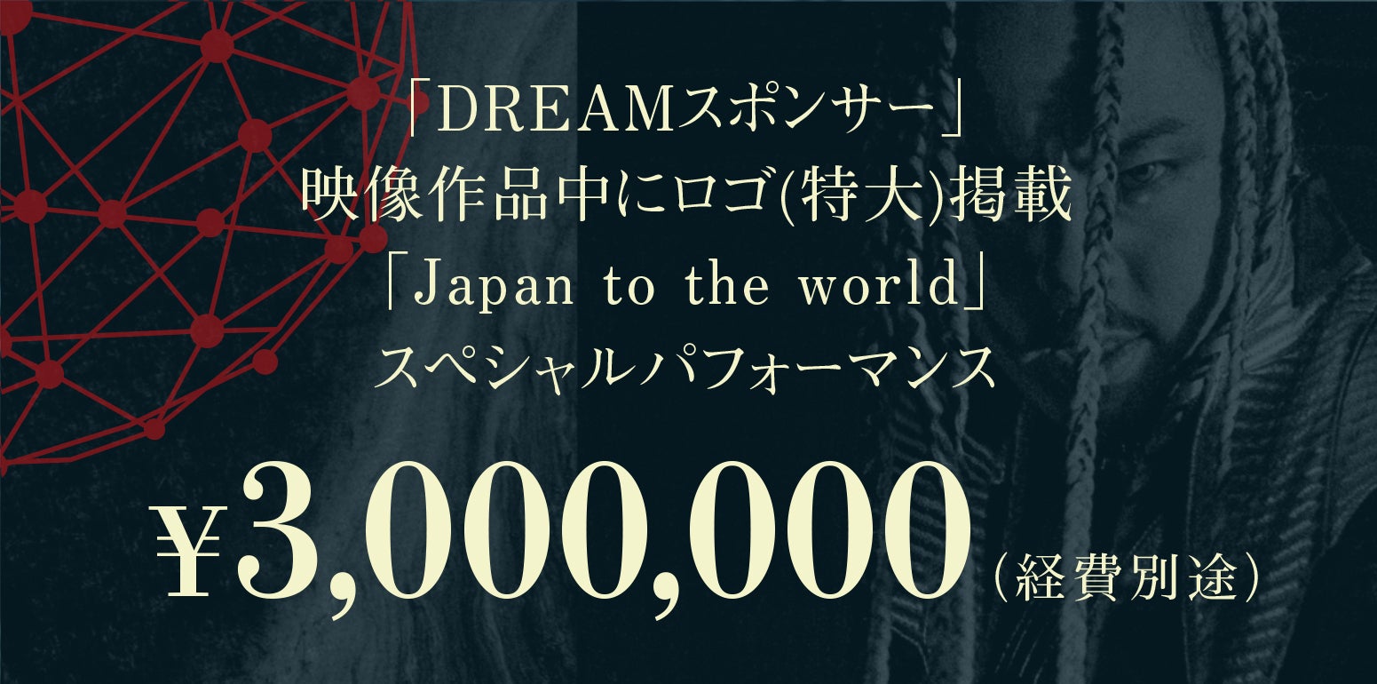 【法人向けDREAMスポンサープラン】法人向けのスペシャルプラン。クレジットの最後に特大でロゴを掲載させていただきます。また、KENTO MORIがスポンサーの方だけのスペシャルパフォーマンスを披露いたします。