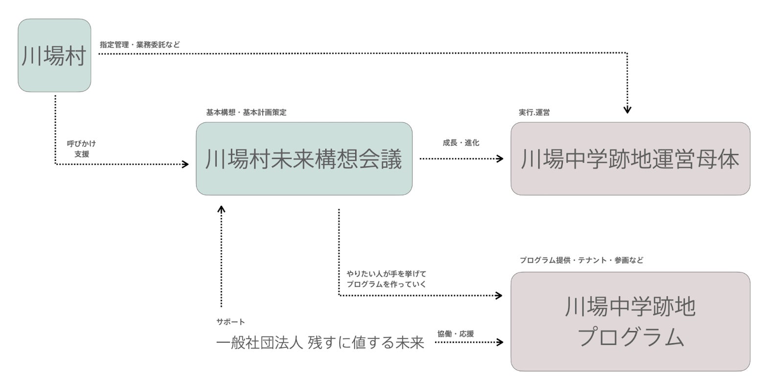 そんな中2023年度より、川場中学校跡地のあるべき姿を模索する「川場未来構想会議」が立ち上がり、私たち「シンカワバ」が誕生しました。村の委託を受けた一般社団法人「残すに値する未来」(通称 風の谷)と共に、さまざまな分野の知見、視点を交えながら議論してきました。