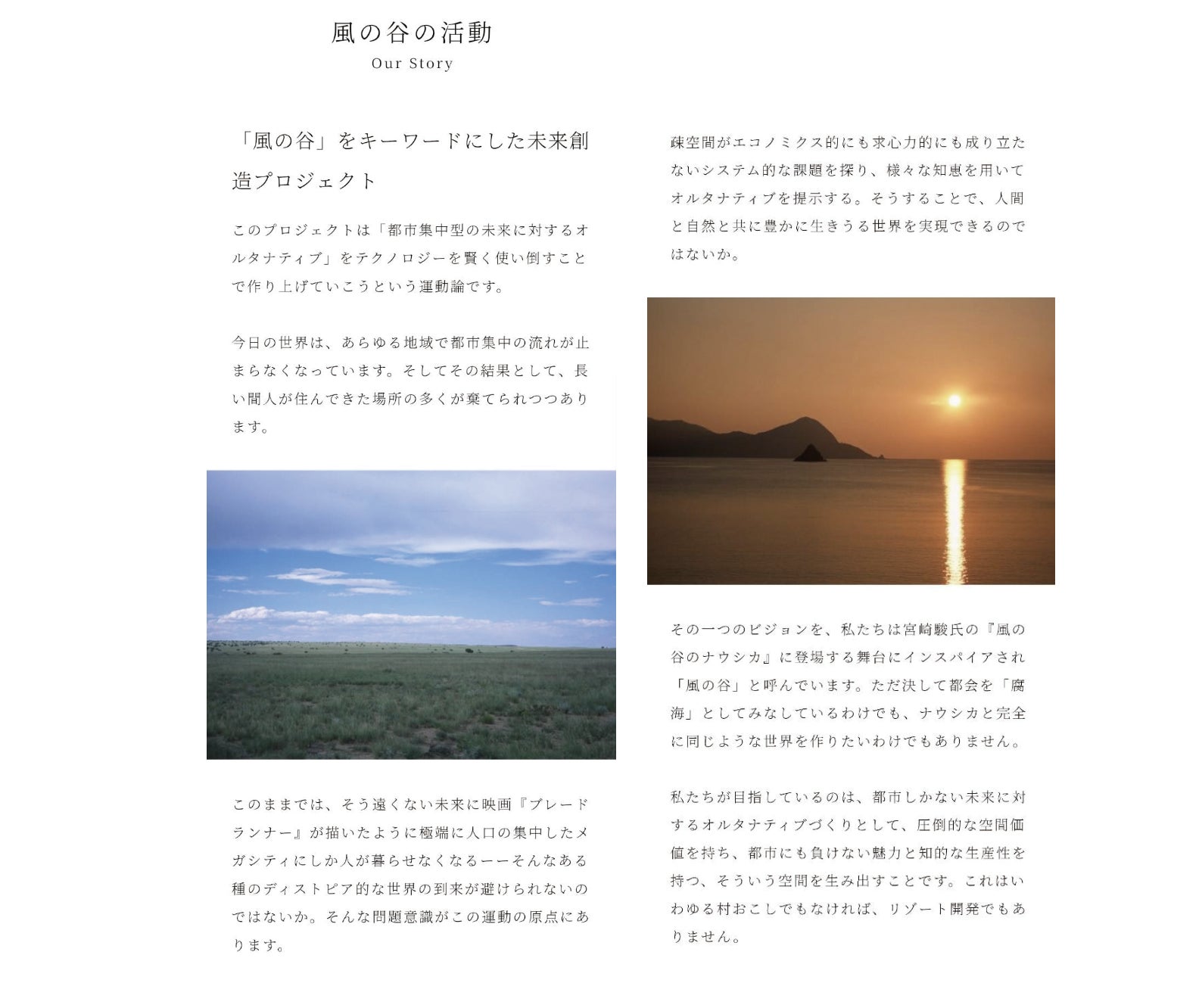 (抜粋)「私たちが目指しているのは、都市しかない未来に対するオルタナティブづくりとして、圧倒的な空間価値を持ち、都市にも負けない魅力と知的な生産性を持つ、そういう空間を生み出すことです。」