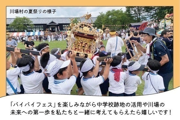 この度、中学校利活用の第一弾として、新しい門出を祝福し今後の未来を創造するイベント「バイバイフェス」を、5月24日(土)に川場中学校にて開催することになりました。