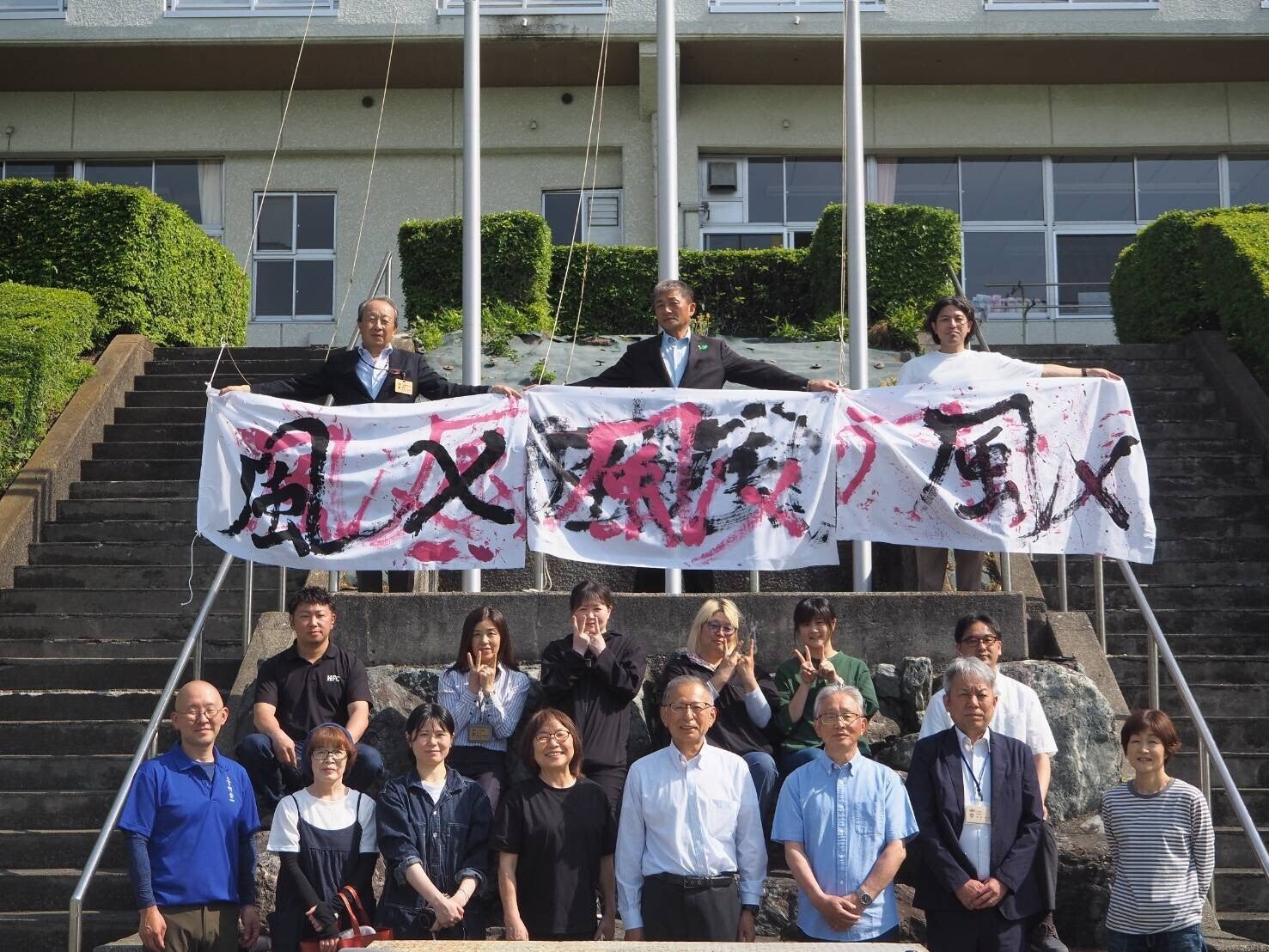 「閉校した川場中学校に感謝し、これからの未来にワクワクする1日を作りたい!」5月の頭からスタートしたこのクラファンの募集ですが、目標達成金額75万円を超える788,000円で見事目標達成となり、5月20日を持って募集を終了しました。97人もの支援者の方々が私たちのプロジェクトにご支援していただいたきました。クラファンゴールを達成できたのも、応援していただいたみなさま方のおかげです。本当に感謝しかありません。誠にありがとうございました!リターン品について、支援者の方々には随時メールでご案内させていただきますので、お待ちください。5月21日には、村長、教育長らをお招きし、シンカワバメンバー、実行委員で集まり週末のイベントに向けて、テーマである「風×(カケル)」を力強く描き旗揚げを行いました。実は5月21日は川場中学校にとって特別な日にあたります。1947年(昭和22年)5月21日 に川場中学校開校式 新制中学校が発足、1980年(昭和55年)5月21日に川場中学校 新校舎へ移転という歴史があり、川場中学校にとって3回目の誕生日を2025年(令和7年)5月21日(水) のスタート宣言式の日としました!テーマの「風×(カケル)」とは?はこび、とどけ、めぐる一人一人が風となり、「はこび、とどけ、めぐる」という循環を生む「風」となる。新しい風を取り込みながら進んできた川場村。この場所が、風を生み出す交流の場として機能していくといいなという願いを込め、「風カケル」をコンセプトテーマとして考えました。今週末の開催に向けて、実行委員メンバー一同全力で準備に取り組んで取り組んでおります!是非当日は会場に遊びにお越しください。