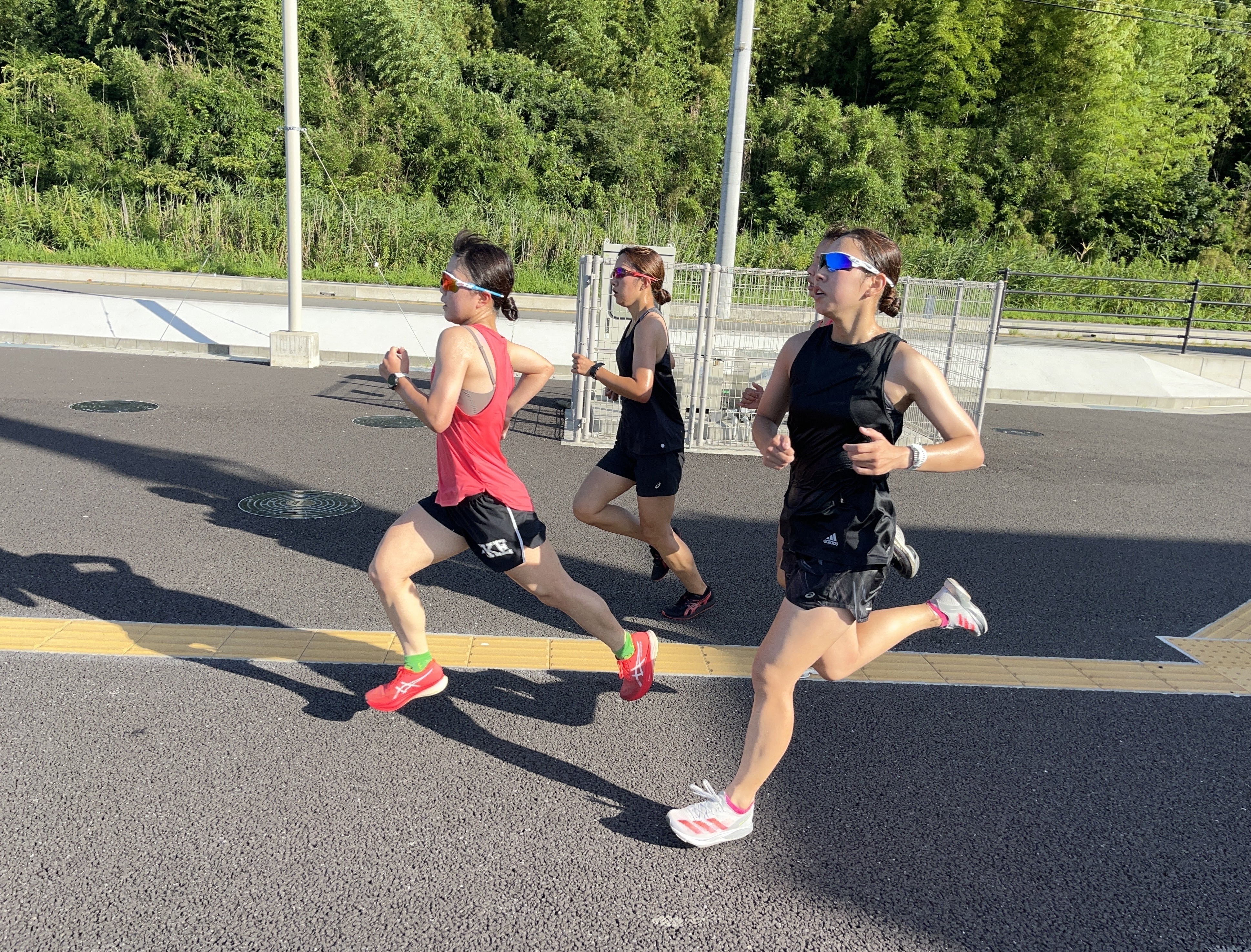 今日は朝イチに競技場の外周で練習を行いました。暑さもありましたが、リカバリーで水分補給や氷水の含んだスポンジを体にあてたりと対策しながら走りきることができました!