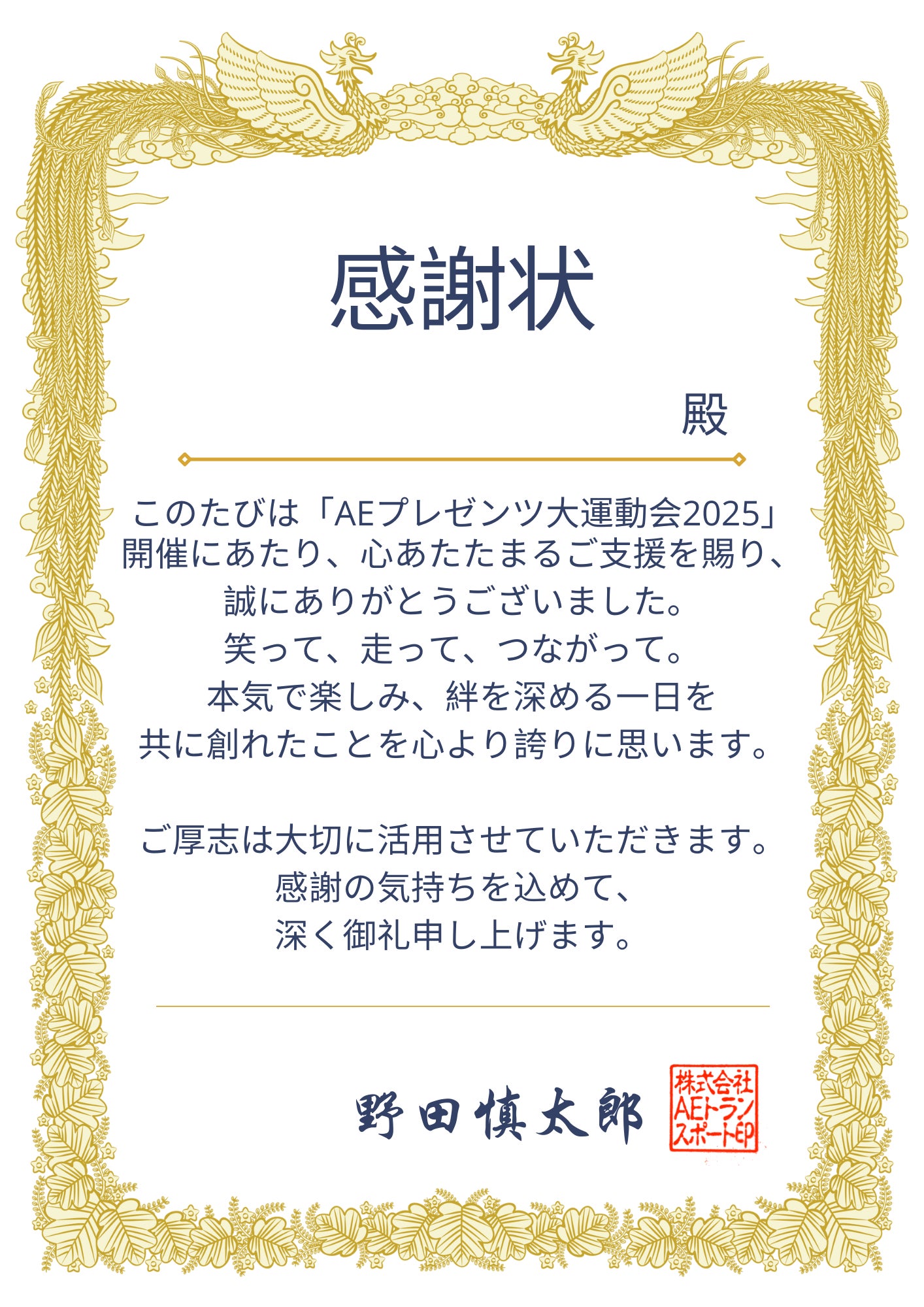 ご支援いただいた方全員に、感謝の気持ちをこめたデジタル感謝状をお届けします。