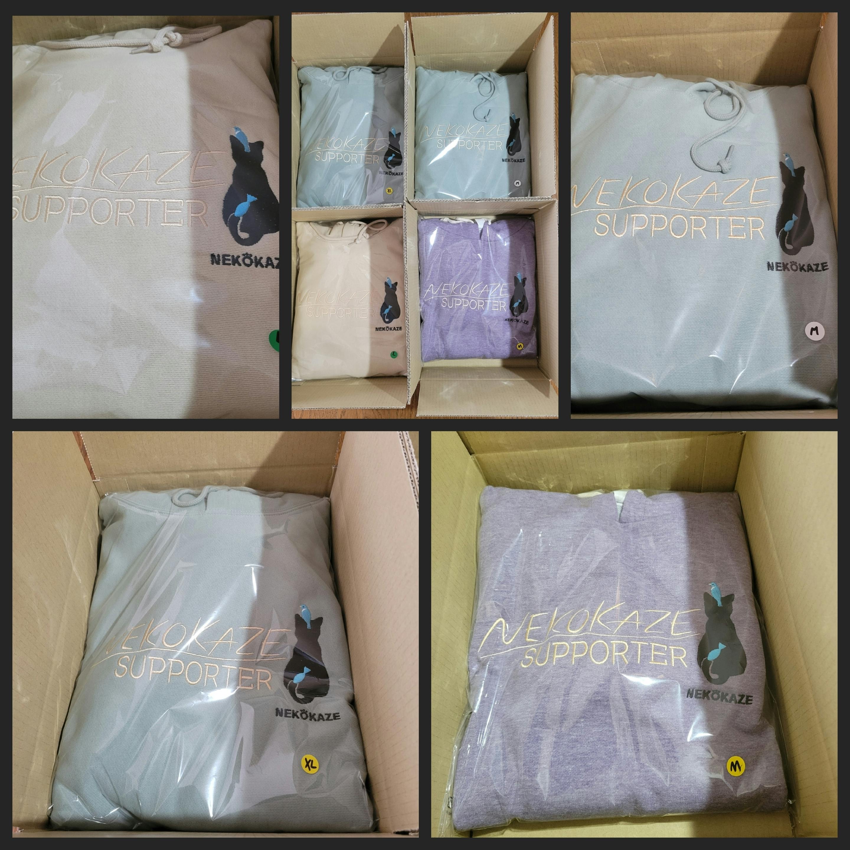 猫のいる風景オリジナル刺繍パーカー、第1弾(5/13-18に支援頂いた分)本日(6/4)支援者様に向け、宅急便にて発送しました。