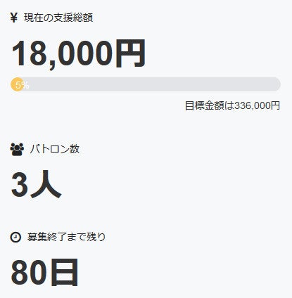 現時点での状況ですが、既に三名の方がパトロンとなって下さり、