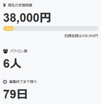 現在までに六名+直接支援一名の方がパトロンとなって下さり、