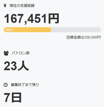 先程、更に二十六人目のパトロン様がご支援を行って下さいました。