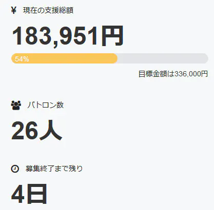 本日、二十六人目のパトロン様がご支援を行って下さいました。