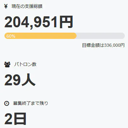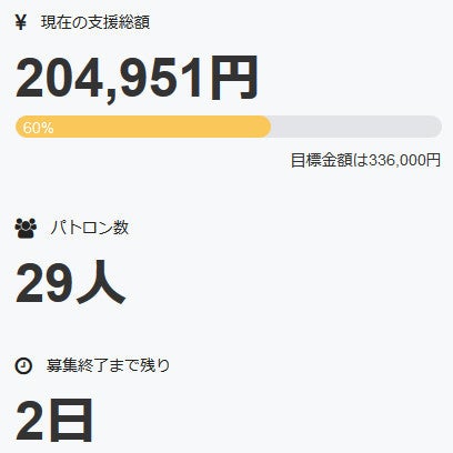 パトロン様の数は現在、二十九名+直接支援三名の