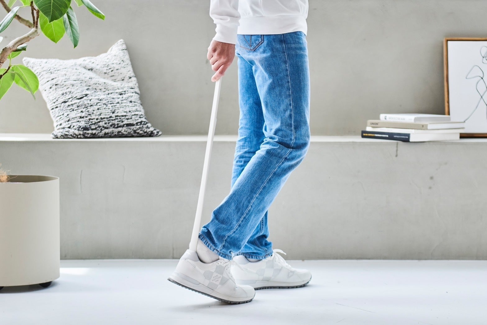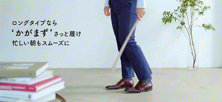 通常の靴べらは使用後の収納に困りがちで、玄関の隅に立てかけるか、専用のスタンドを用意する必要があります。吊り下げ式もありますが、急いでいるときはフック穴に上手く入らずイライラ、、