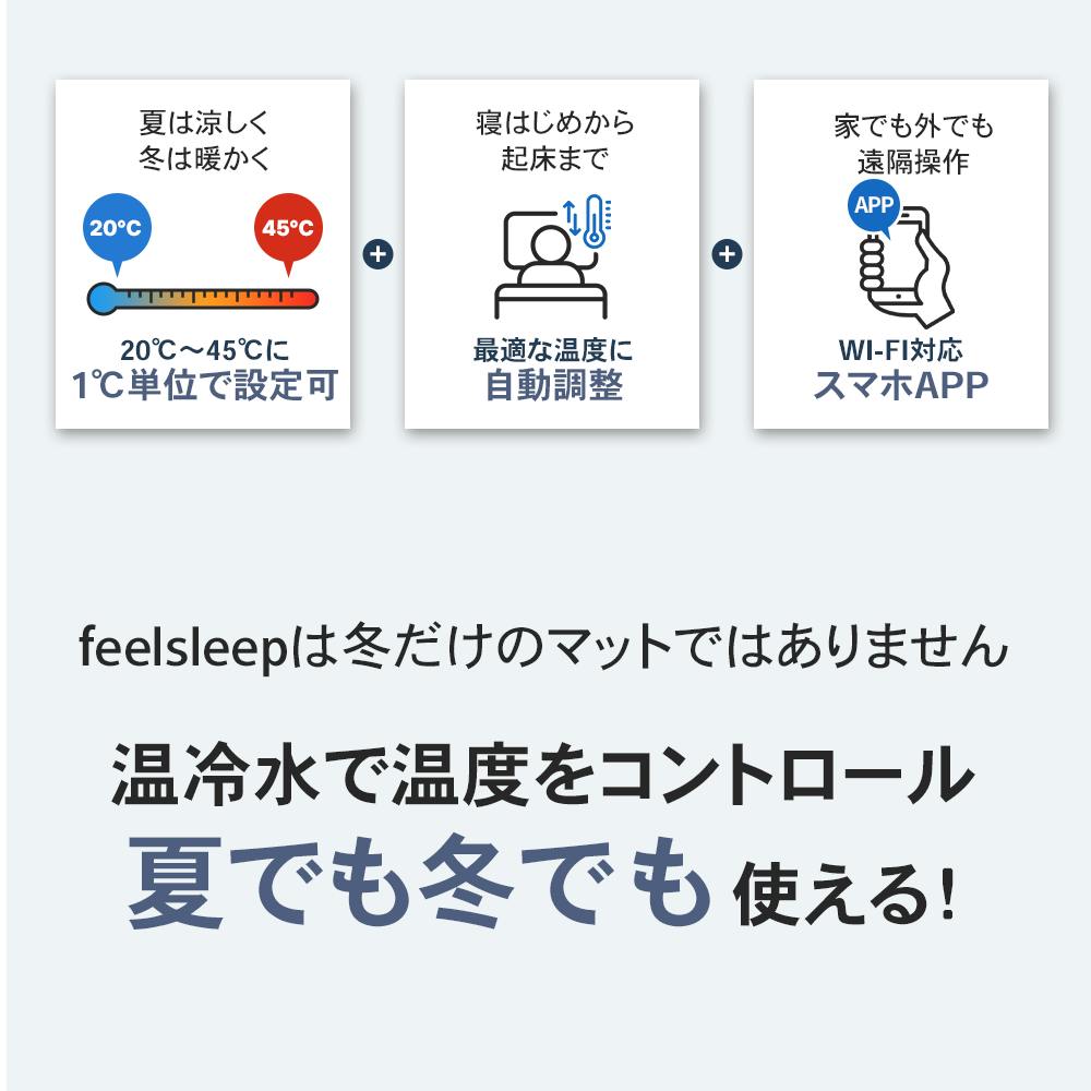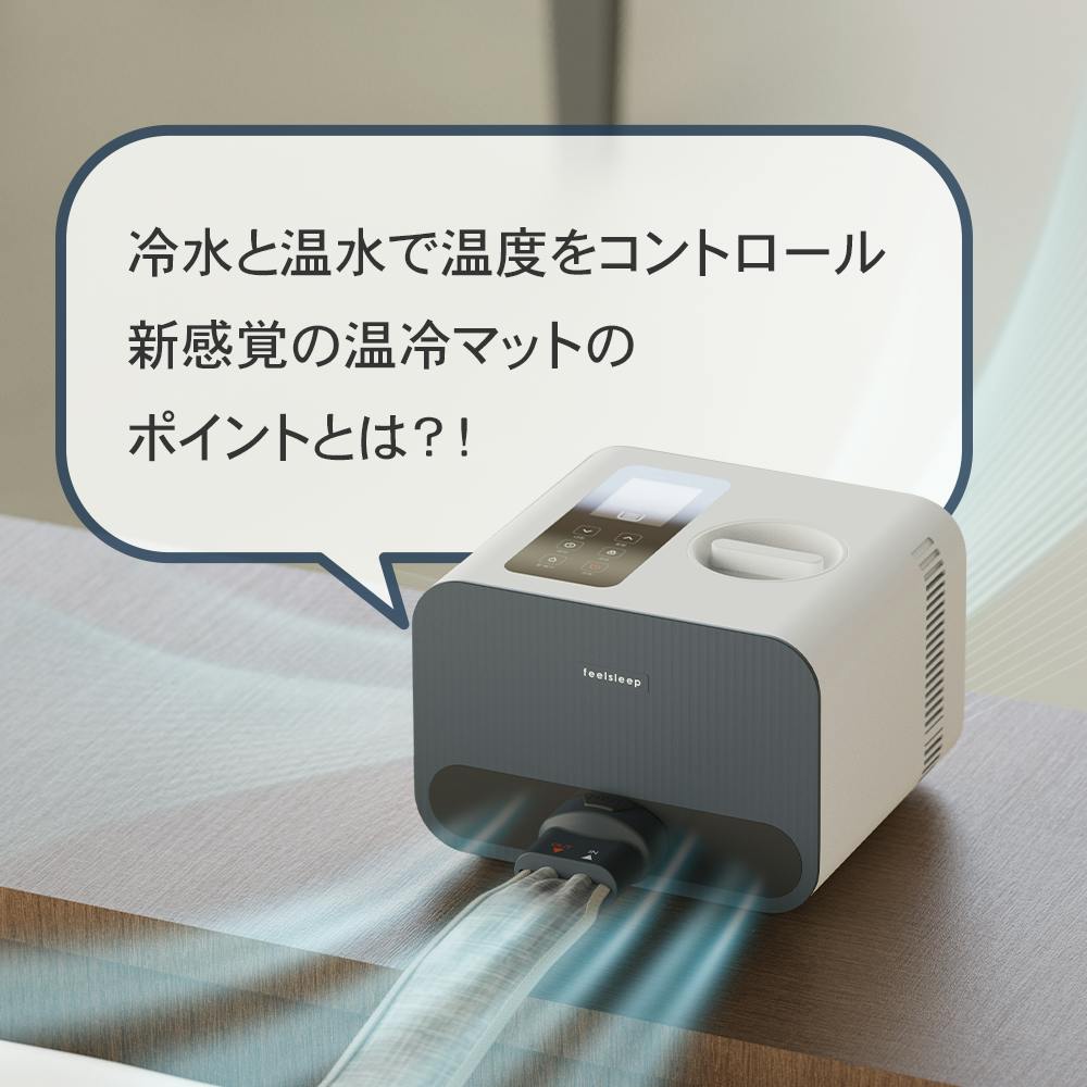 高級マットレスなど安眠を促す商品がたくさんありますが、昨今の異常な気温変化には強制的な温冷が必要と考え、電気を使わず水で温度をコントロールするというfeelsleep温冷水マットが誕生しました。